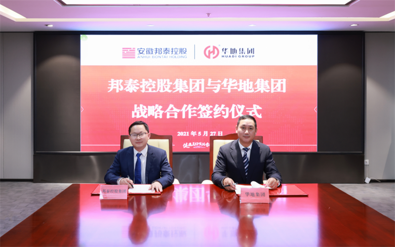 2021年5月27日,華地集團(tuán)與安徽邦泰控股集團(tuán)簽署戰(zhàn)略合作協(xié)議,雙方正式攜手,充分發(fā)揮自身優(yōu)勢(shì),資源共享,攜手共贏,共建美好生活和城市新愿景。