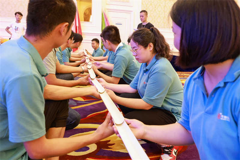 隨著華地集團首屆工程師文化節(jié)的啟幕,現(xiàn)場還開展了一系列精彩拓展活動,慶祝這個屬于華地工程師的節(jié)日,致敬美好匠心。堅定傳承。挑戰(zhàn)自我、團結(jié)一致,勇猛向前,華地一直在踐行。大雨晨跑,風(fēng)雨無阻,分組破冰展示、拔河比賽、團隊挑戰(zhàn)150秒……拓展競技既是對意志力的考驗,同時也起到了熔煉團隊的作用,我們希望以此為開端,在未來的征途中留下每一位華地工程師堅實的腳印。華地工程師們?nèi)σ愿埃谟螒蛑姓业侥繕伺c方法,團結(jié)協(xié)作。最后,華地工程師們一同共繪華地藍圖,我們期待華地文化中的匠心精神,在他們之中不斷延續(xù)、傳承,書寫華地更加精彩的美好明天!