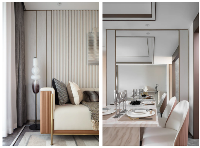 房間內不同物理質感的交相輝映能夠產生具有層次感的精致觸感。皮質表面的光滑細膩紋路給人以柔軟且平靜的舒適感。
