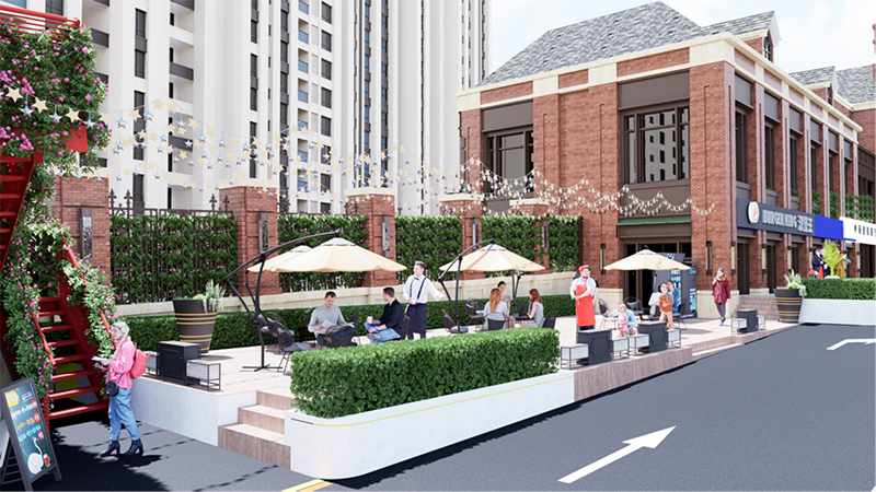 龗龍街汲取地域特征靈感,將設計風貌與場地內的建筑風格相協調,融合綠色、多元、人性的設計理念,注重文化注入,以人情味、煙火氣的景觀營造給予人們返璞歸真的生活體驗,提升生活環境,升級商業能級。升級改造之后,預留更多活動空間,為居民制造更多獨特而有創意的活動,營造健康向上的生活方式,承載居民的情感訴求,帶來家門口有溫度的“情感鏈接場”,實現和諧共生的美好愿景。