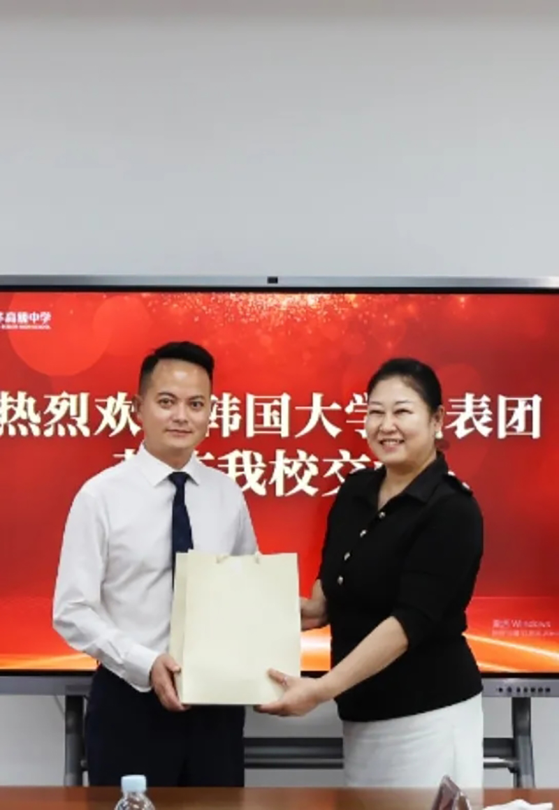 遠(yuǎn)道而來(lái)的韓國(guó)交流團(tuán)首先參觀了新華高級(jí)中學(xué)校園。參觀途中,吳東校長(zhǎng)向韓國(guó)交流團(tuán)介紹了學(xué)校的歷史、辦學(xué)理念以及校園文化等。學(xué)校現(xiàn)代化的校園設(shè)施、優(yōu)良的教學(xué)環(huán)境、先進(jìn)的教育理念,讓交流團(tuán)贊不絕口。在現(xiàn)場(chǎng)交流會(huì)上,代表團(tuán)與我校互相贈(zèng)送了禮物。
