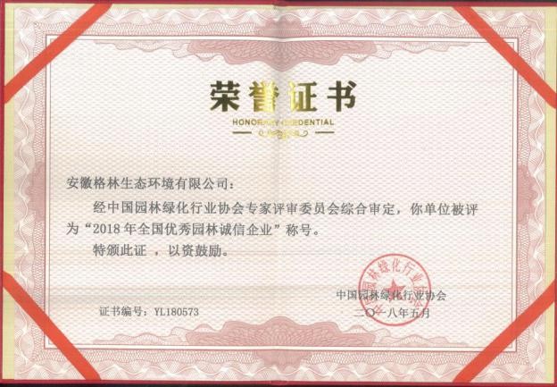 據了解,此次評選旨在推進園林綠化行業產業化發展,進一步營造誠實守信的市場環境,增強企業誠信意識,加強行業自律,同時表彰行業內優秀的項目和個人。格林生態不負眾望,斬獲多項殊榮,在誠信和品質上獲得了園林行業的認可,也再一次證明了格林生態的專業水平綜合實力。