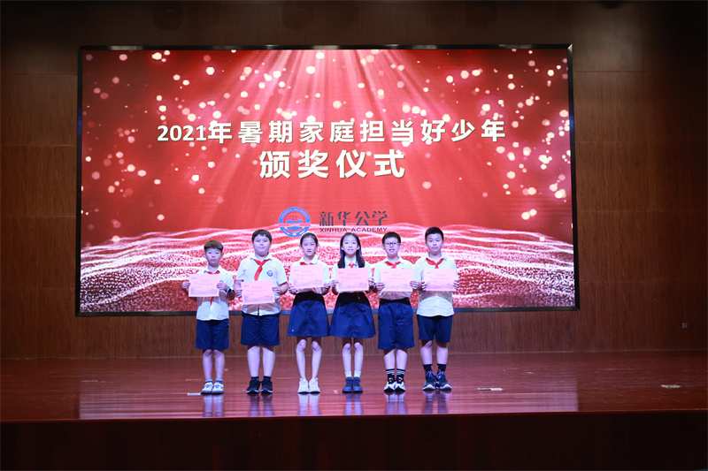今年是建黨100周年,我們每個新華少年都應該成為對家庭對國家對社會有擔當的有為少年!為此,在暑期里,我校小學德育處發出了評選“家庭擔當好少年”的倡議。希望同學們在健康文明、充實而又有意義的假期中成長為有擔當的有為少年,德育處要求每個同學把個人安全放在第一位,充分地體驗社會、家庭生活,感恩社會和父母,接受鍛煉,增長才干。這次評選活動得到了廣大家長們的支持,他們從安全實踐、生活實踐、孝親實踐、讀書實踐、孝親實踐等方面進行積極引導,家校共育,孩子們有了不小的進步,同時家長們也注重收集孩子在活動中的過程性照片,根據家長的評星和推薦,結合學校德育處的考查,最終評出了29位“家庭擔當好少年”。校領導為他們進行了頒獎。