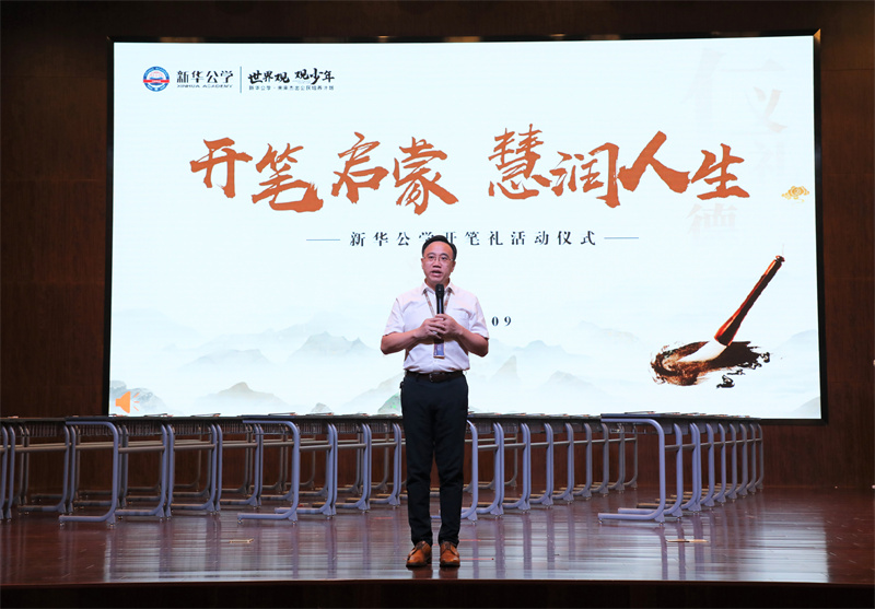 “開筆禮”是古代讀書人人生四大禮之一,被稱為人生“第一禮”,俗稱“破蒙”,對每個讀書人來說都有著重大的意義,是步入知識殿堂、走向成才的起點。9月28日下午,在新華公學報告廳舉行了莊嚴而隆重的“開筆禮”活動,一年級學生在家長與老師的見證下“開筆啟智”。新華公學總校長秦新春為此次開筆禮致辭,他期待同學們在中國傳統文化浸潤中,努力成為一名文明有禮、感恩孝順、積極進取的終身學習者。