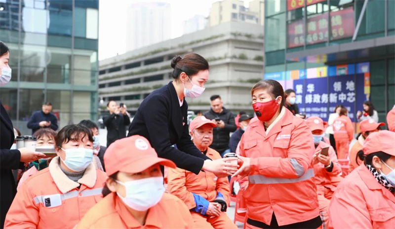 熱氣騰騰的暖心姜茶,為寒冷冬日里的“溫暖太陽”,郁金香VIP服務(wù)人員,為每一位“城市建設(shè)者”送上一份冬日的溫暖。 一杯杯溫暖的姜茶,一句句貼心的問候,溫暖了每一個“城市建設(shè)者”的心田,感謝他們?yōu)槌鞘兴龀龅膫ゴ筘暙I(xiàn)。