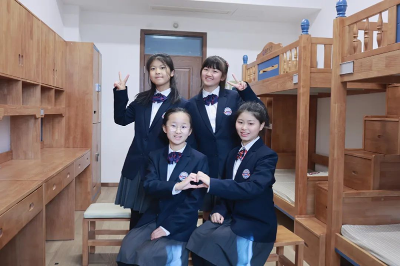 學(xué)校采用全封閉寄宿制管理,住宿環(huán)境為四人間,實(shí)木床,24小時(shí)冷熱水,24小時(shí)冷暖空調(diào),24小時(shí)校醫(yī)、宿管、老師陪伴、開(kāi)通親情電話……宿舍不只是孩子睡覺(jué)的地方,也是精神家園,在這里感受家的溫暖。