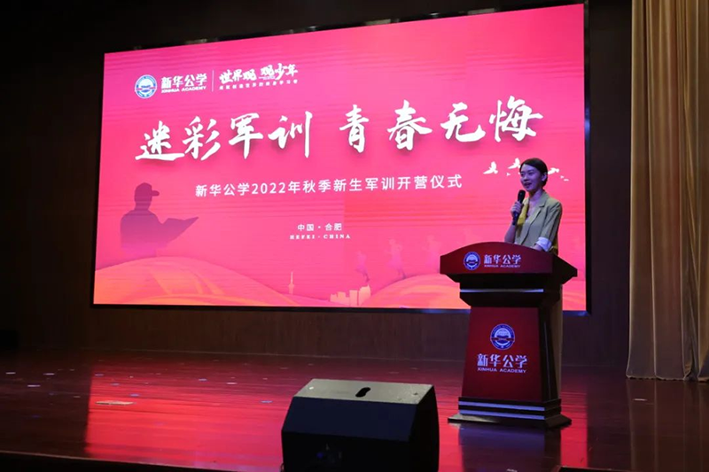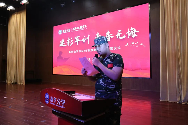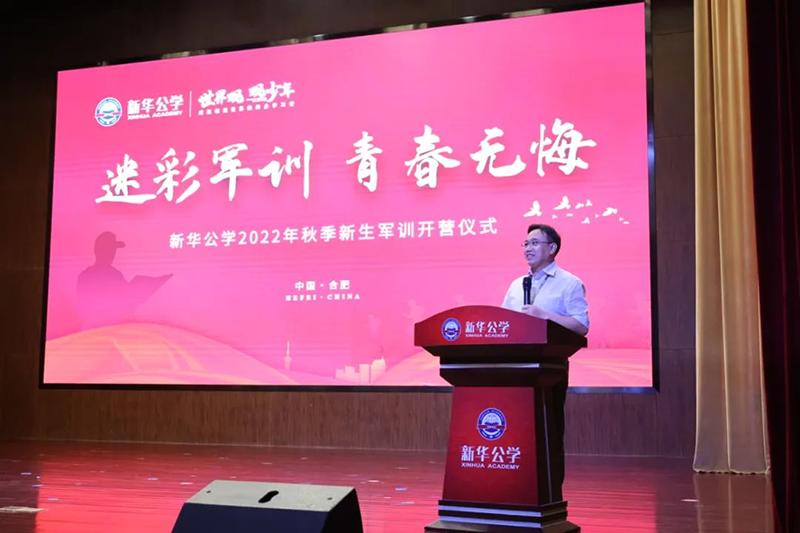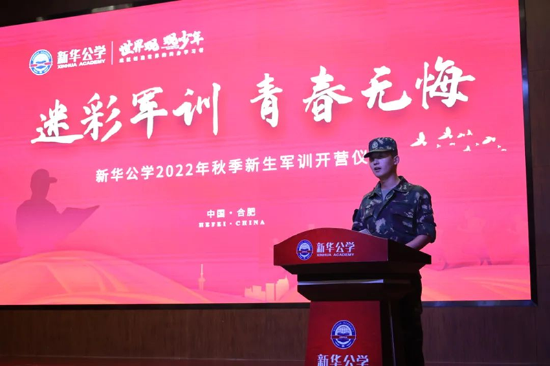 隨后新華公學(xué)總校長秦新春給同學(xué)們帶來了殷切的期望和囑托。他表示,軍訓(xùn)是邁入人生新階段的第一課。因此,通過軍訓(xùn)的磨練后,他希望同學(xué)們能夠在生活上自立、學(xué)習(xí)上自主、健身上自覺、行為上自律、精神上自強,樹立良好的學(xué)習(xí)和生活觀。