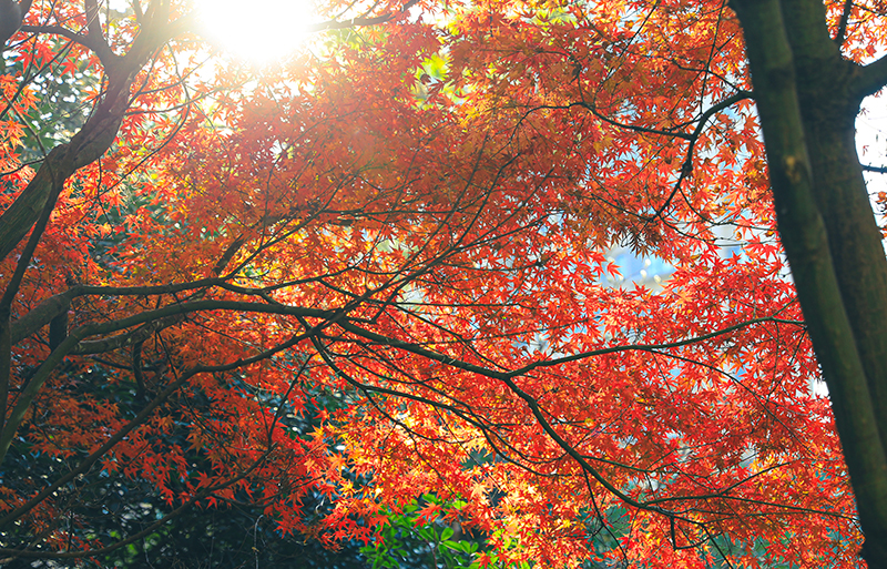 “霜染鴉楓迎日醉”,和煦陽光灑滿楓葉,如生命之火輕盈躍動,以經(jīng)霜不改蓬勃的風(fēng)姿溫暖過路歸人。