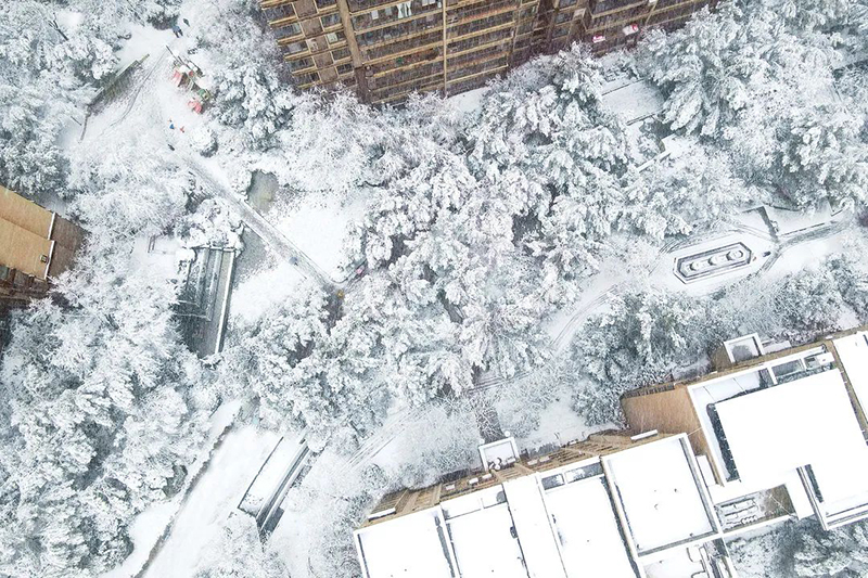 水面上結(jié)了晶瑩的冰紋,洋洋灑灑的白色“羽毛”,為華地社區(qū)蓋上了一層薄薄的“天鵝絨”。堆雪人,打雪仗,成為了社區(qū)里充滿趣味的風(fēng)景。