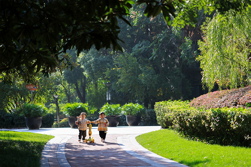林蔭芳草錯落蓬勃,渲染一片詩意天地,承載著寶貝天真的情態(tài)、記錄下家人幸福的笑顏。這份綠意盈懷的美好,是自然的恩賜,更離不開華地對景觀營造的細(xì)致用心。
