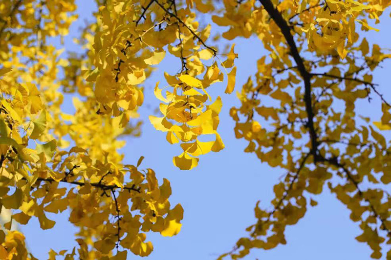 黃葉如金,沉醉在冬景的人們聚在繽紛林蔭下,或漫步賞景,或歡笑暢聊,總有享不完的樂趣。
