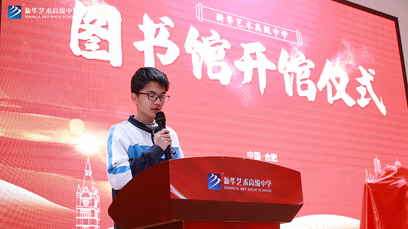 學(xué)生代表胡旭同學(xué)發(fā)言。他說(shuō),圖書館給了我們一個(gè)追求真知、重塑自我的平臺(tái),作為一名新華學(xué)子,要銘記“書山有路勤為徑,學(xué)海無(wú)涯苦作舟。” 希望全體同學(xué)以閱讀的名義,遇見更好的自己。同時(shí)呼吁大家愛護(hù)圖書館的每一方角落,遵守圖書館的規(guī)章制度,讓書香的氣息飄逸在校園的每一方土地!