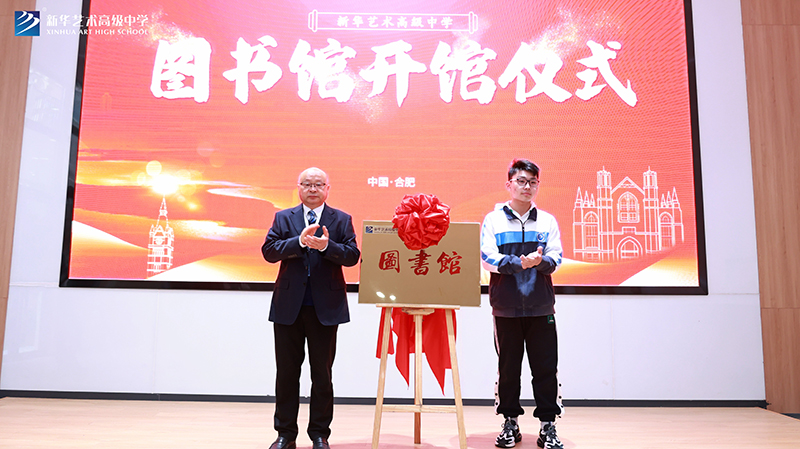 最后,校長(zhǎng)許友科、學(xué)生代表張志成共同為圖書館揭牌。