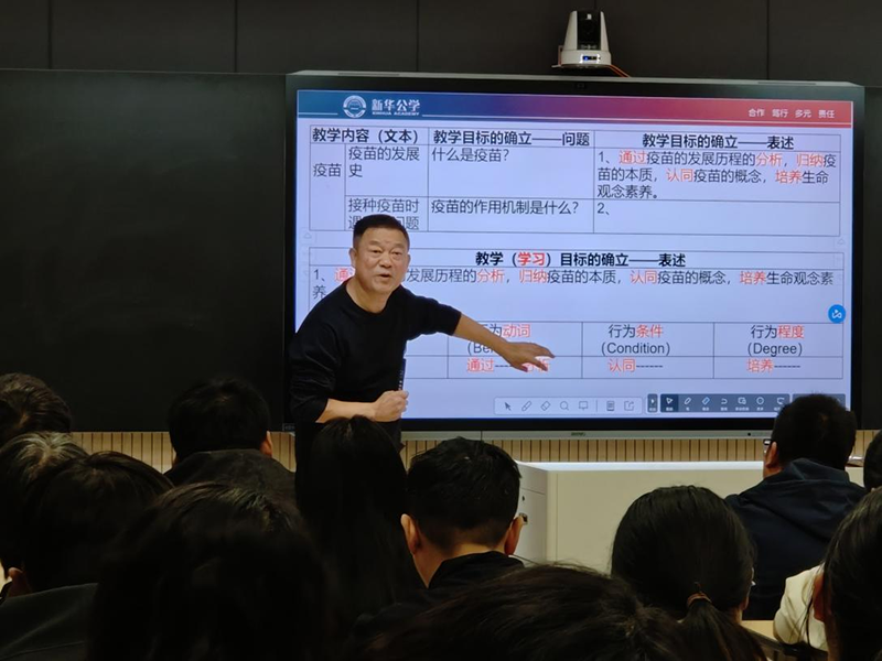 會(huì)議上,為提高校內(nèi)學(xué)科教師學(xué)科素養(yǎng),并根據(jù)雙語部高中近期的教育教學(xué)情況,雙語部中學(xué)尹漸平校長開展了一場“‘學(xué)教評’一體化教學(xué)設(shè)計(jì)”的專題講座。尹校長長期深入一線教學(xué),講座內(nèi)容深入淺出,運(yùn)用詳實(shí)的課例,對如何實(shí)現(xiàn)“學(xué)教評”一體化教學(xué)設(shè)計(jì)進(jìn)行了詳細(xì)的講解。專題講座分為“什么是學(xué)教評一致性教學(xué)設(shè)計(jì)”“教學(xué)設(shè)計(jì)要解決三個(gè)問題”“教學(xué)目標(biāo)的確立和表述”“教學(xué)設(shè)計(jì)”“教學(xué)評價(jià)”“核心素養(yǎng)”六個(gè)部分