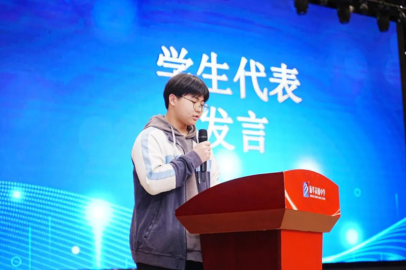 高二4班鮑李合毅同學(xué)為同學(xué)們分享寶貴的學(xué)習(xí)經(jīng)驗(yàn)。他號(hào)召全體同學(xué)要摒除一切干擾,把“目標(biāo)”刻在心里,樹立“戰(zhàn)勝自己、超越自己、成就自己”的自強(qiáng)不息的精神來(lái)迎接學(xué)考,并預(yù)祝同學(xué)們都能考出自己理想的成績(jī)!