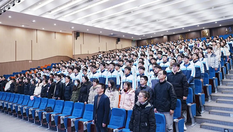 伴隨著莊嚴(yán)的國(guó)歌,本次大會(huì)拉開序幕,全體師生齊唱國(guó)歌,莊重而肅穆。