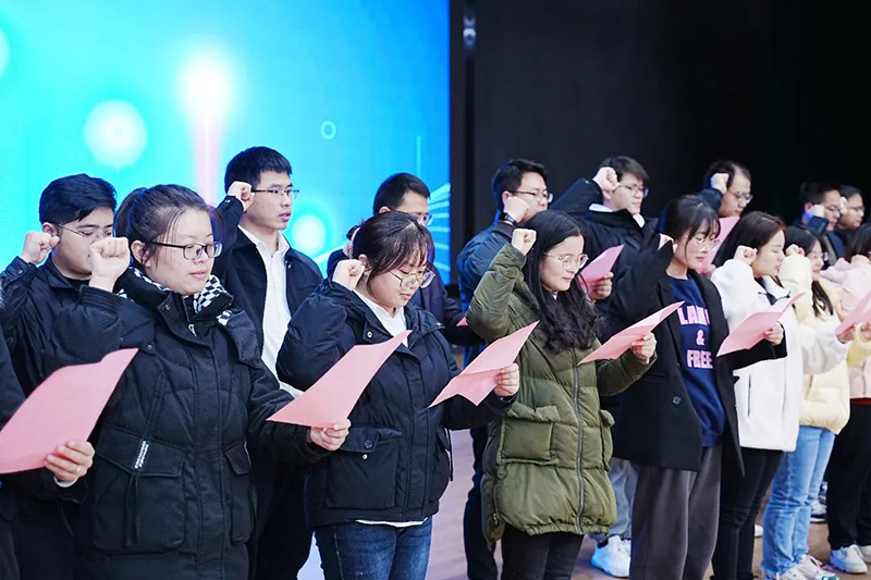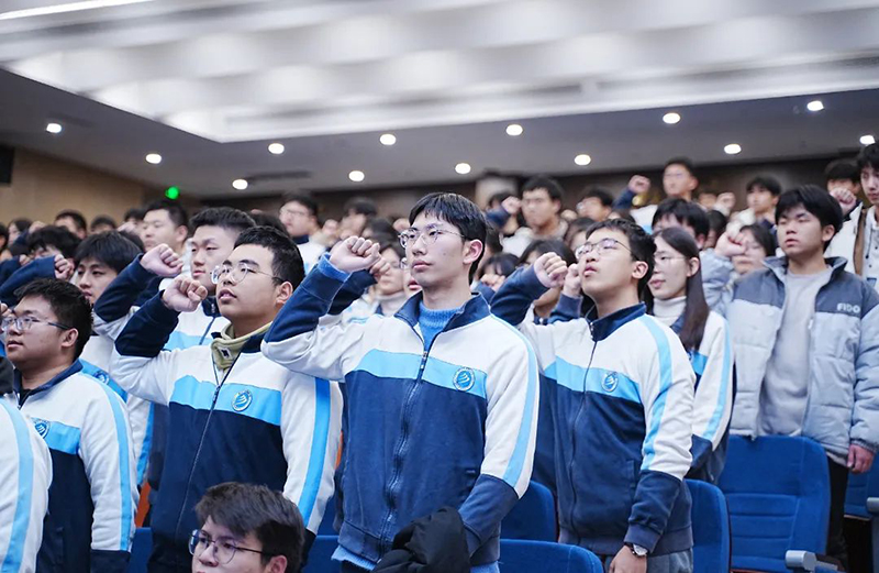 接下來(lái)由鮑李合毅同學(xué)帶領(lǐng)全體學(xué)生宣誓,他們豪情萬(wàn)丈,壯志凌云,鏗鏘的宣誓響徹大廳,氣壯山河的誓言似乎已經(jīng)在預(yù)示著他們學(xué)考的勝利。